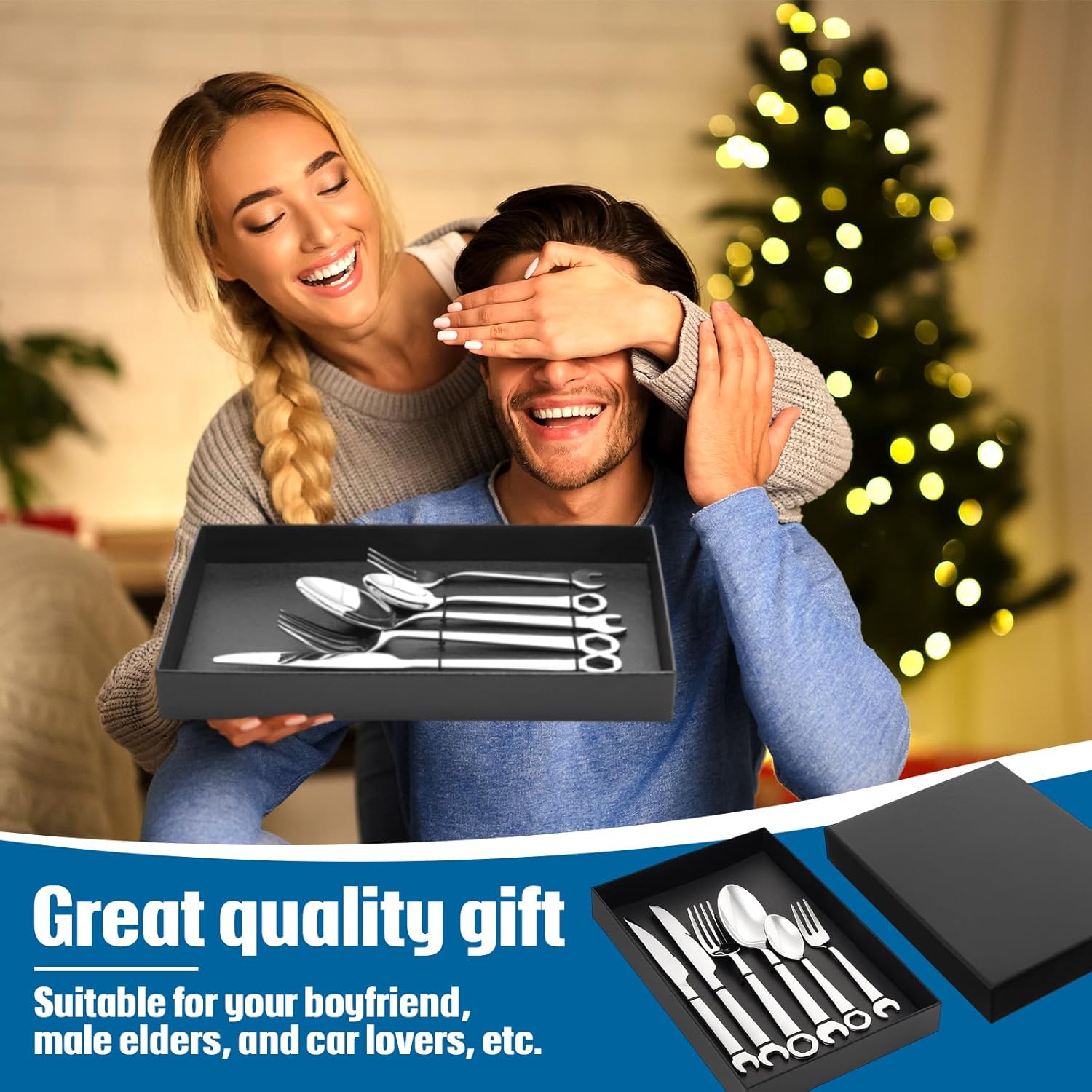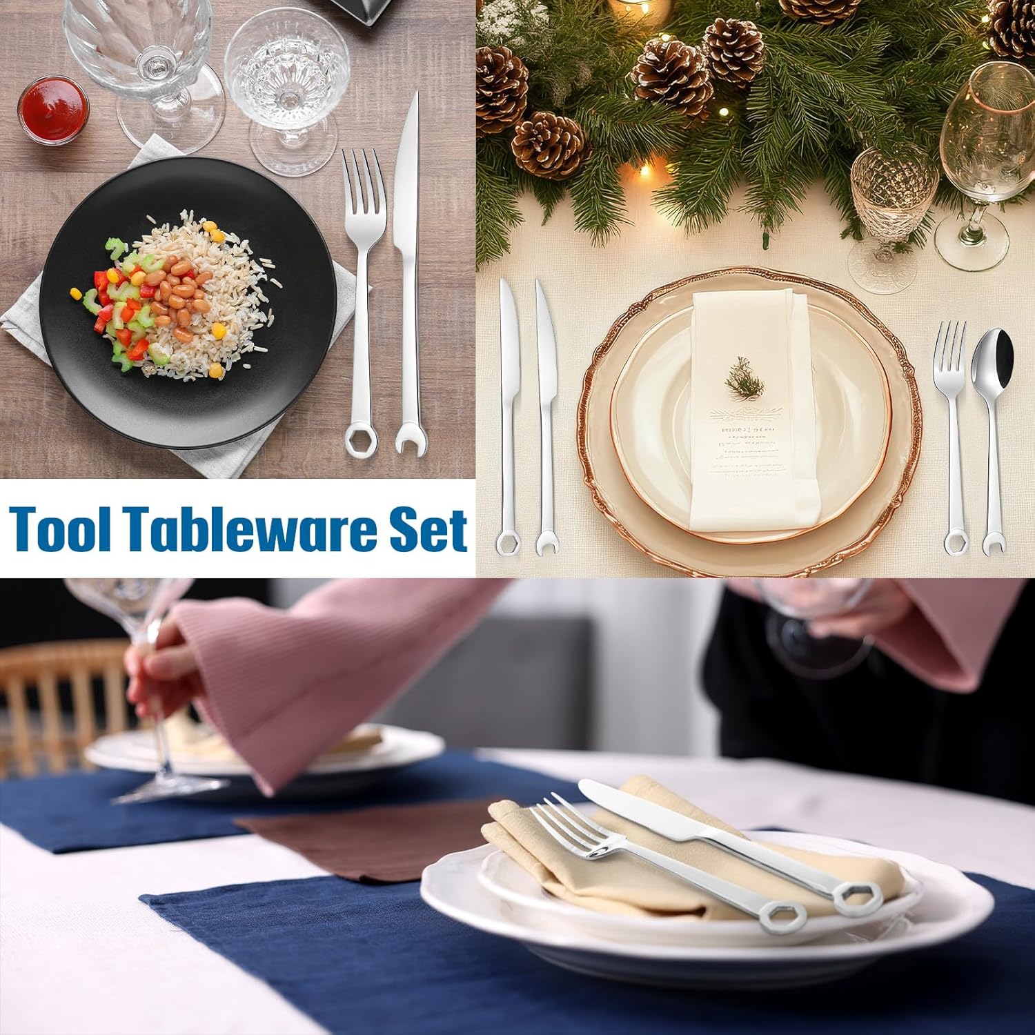 – **Unique Tool Design:** Each piece in the set is designed to resemble classic tools, making it a perfect gift for mechanics or anyone who appreciates a unique twist on traditional cutlery. The set includes a wrench-inspired fork, knife, and spoon.