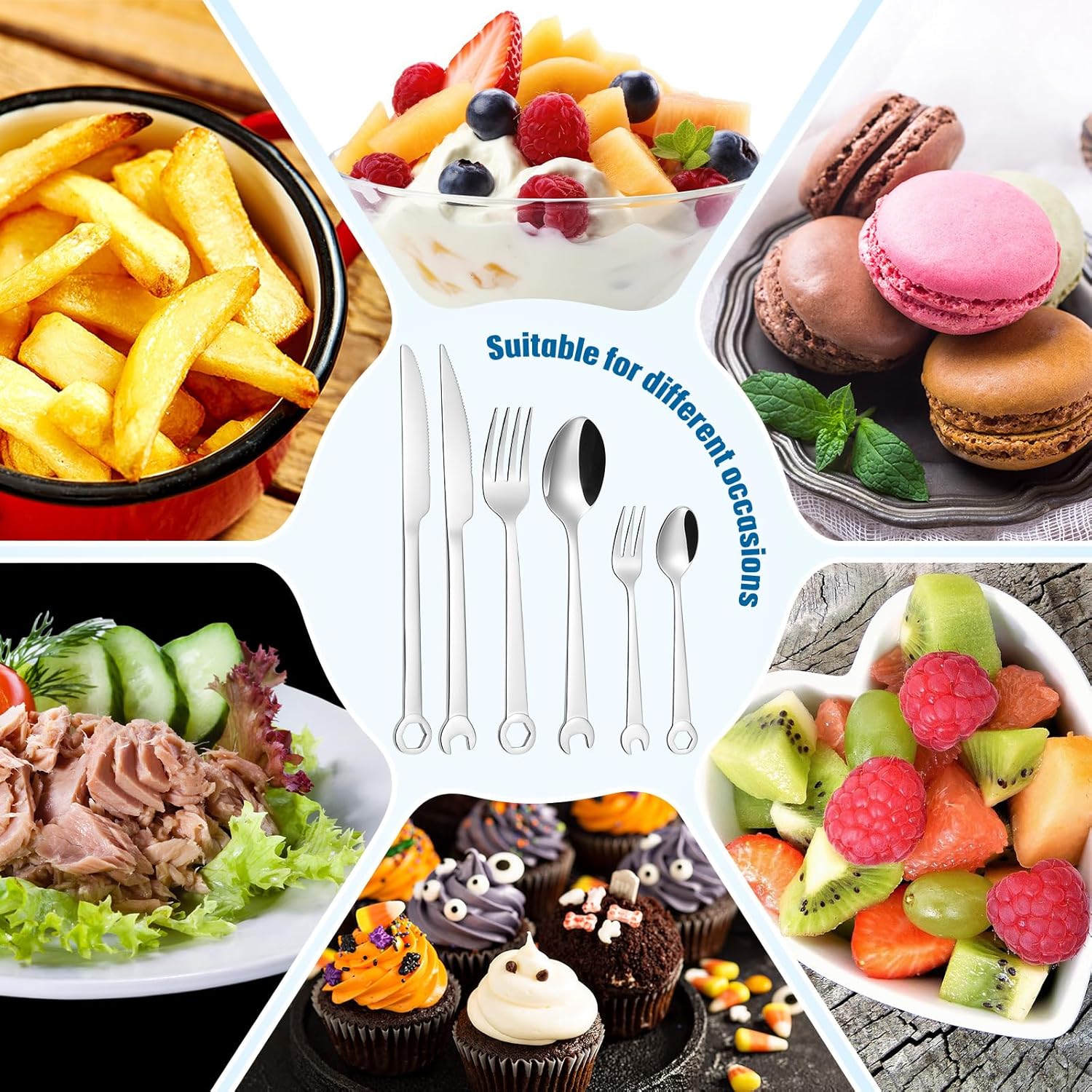Elevate your dining experience with the Honeydak 6-Piece Silverware Tool Cutlery Set, a perfect blend of functionality and unique design. Crafted from premium stainless steel, this tableware set is not only durable but also adds a touch of novelty to any dining setting.
